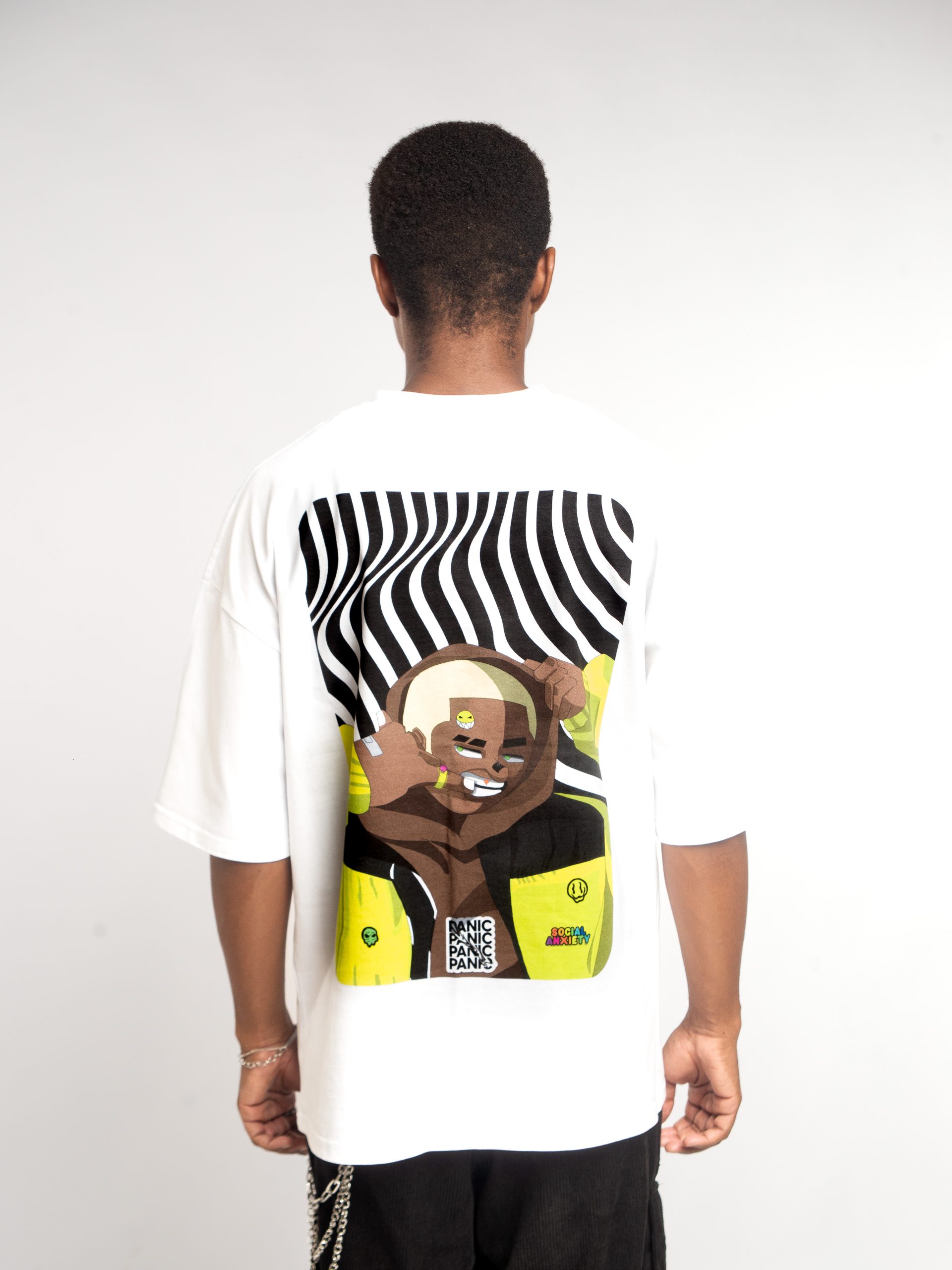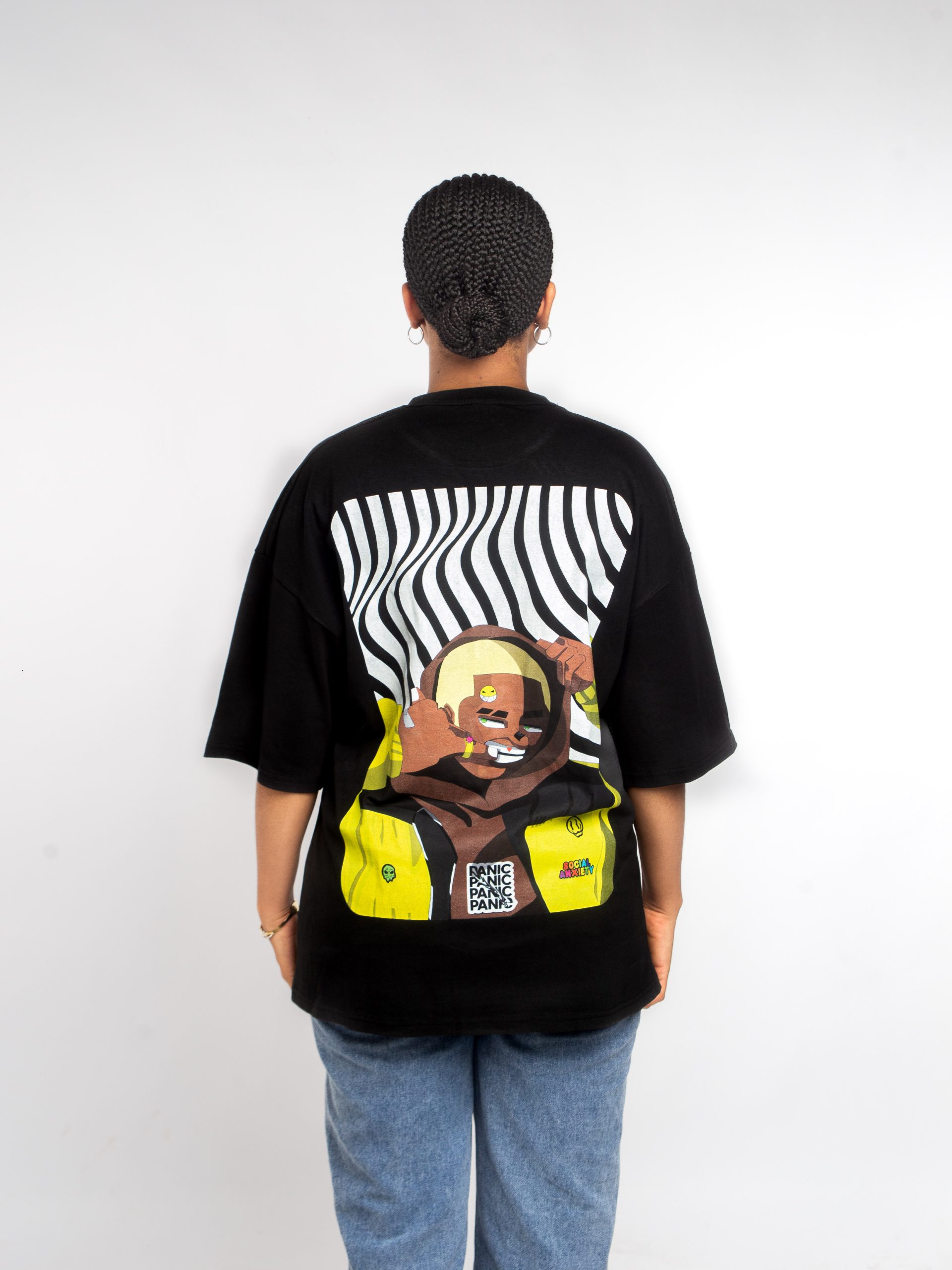 Make a bold statement with the “Social Anxiety” tee from our Cartoon Couture Season 1 collection (CC-SS1). This unisex tee blends artistic expression with everyday wear, featuring a striking graphic of a stylishly illustrated character showing signs of shyness or discomfort.